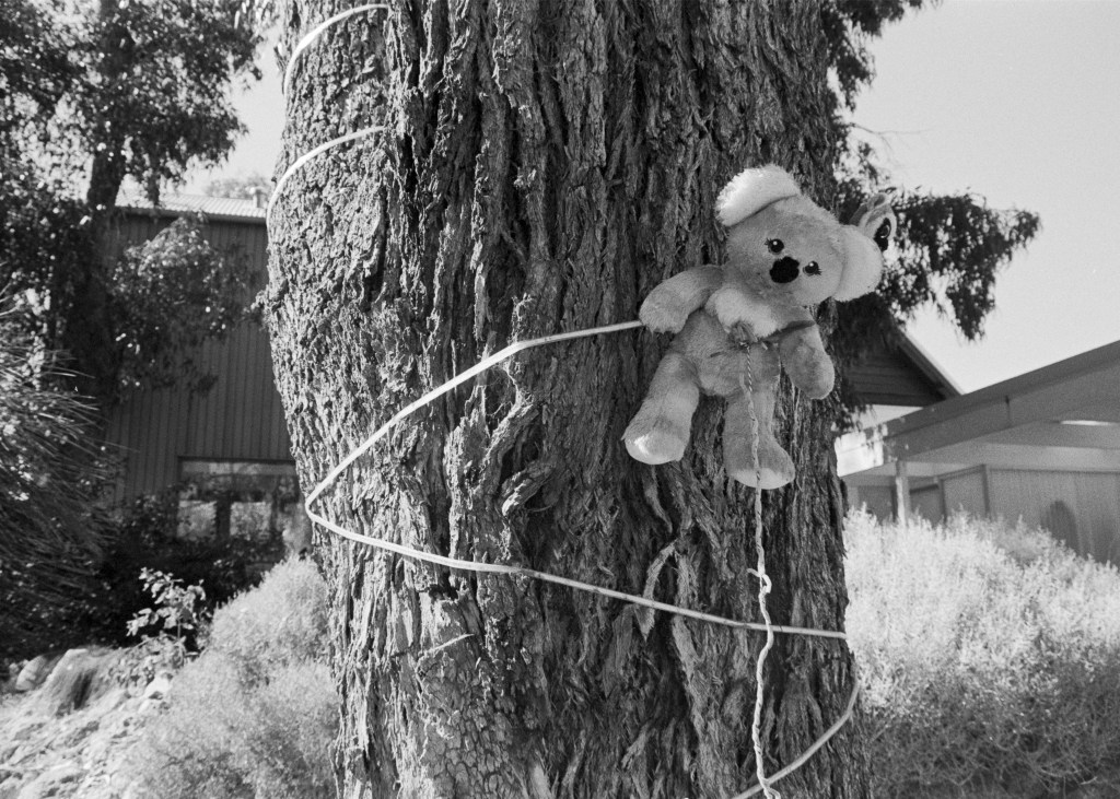 Everyone has a lived experience of COVID-19. These photos were all taken around April 2020 on 35mm black and white film as I wandered the coastal suburbs of Perth near my home walking my dog. The little things are what resonated. The silence of the streets, empty parks, taped off playgrounds, the teddy bears and rainbows in the surburban houses; worn offerings of mute solidarity to children unable to play and parents wondering about an uncertain future.